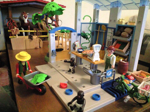 他にも飼育員とオウム、体重計や自転車、エサの材料、飼育道具などの小道具がたくさんついててお得なセットでした。